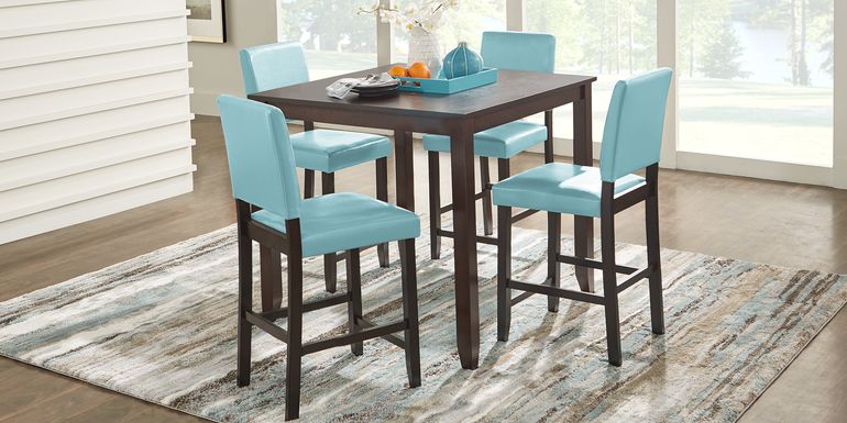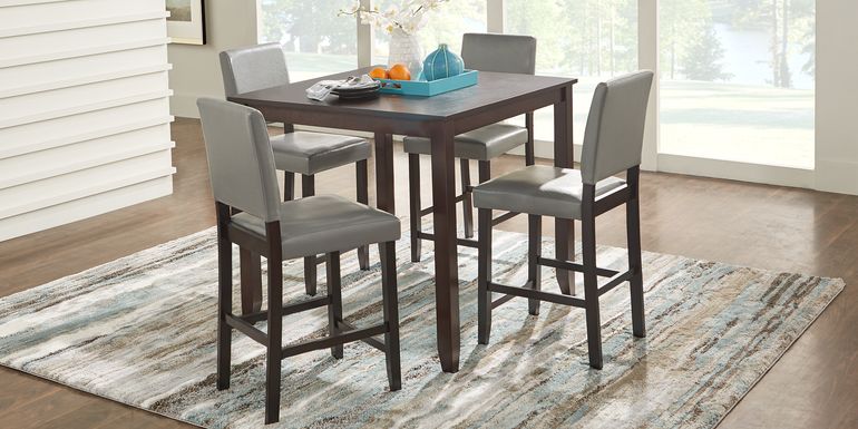Whether placed in an eat-in kitchen or small apartment, this rich espresso brown dining set is the perfect size. The table folds allowing you to double the space depending upon your needs. With a modern rustic design, the sleek barstools feature a footrest and comfortable gray cushioned top. It's the perfect set for entertaining or everyday use.