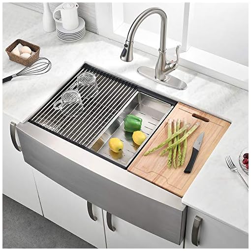 This item: 30 Farmhouse Sink Stainless - Sarlai 30 Inch Kitchen Sink Ledge Workstation Sink Apron Front Single Bowl 16 Gauge Stainless Steel Luxury Kitchen Farm Sink $349.00 AIMADI Commerical Kitchen Faucet with Sprayer,Single Handle Pull Down Sprayer Kitchen Sink Faucet with LED Light Two Spout,Brushed Nickel $106.98
