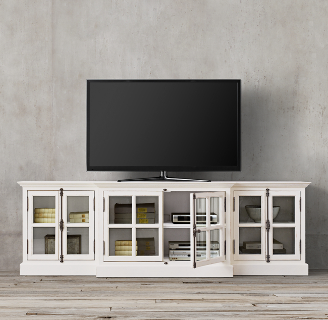 RH's French Casement 100" Media Console:Panel doors and fine crown molding give ... Cast-iron crémone hardware, a signature element of French architecture, ...