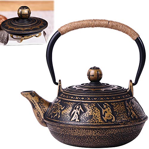 Best with Strainer - JUEQI 900 ML Old Dutch Cast Iron Teapot. "Has a gold engraved peony design in exterior, Rust-resistant, Lead-free enamel-coated interior, Comes with the string wrapping handle.". Best Japanese - Hwagui Best Japanese Cast Iron Teapot.
