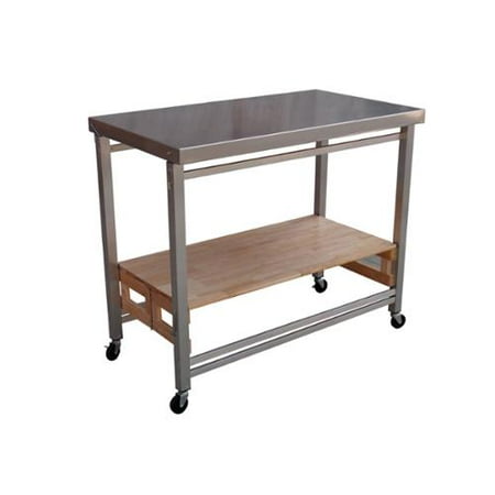 At 36-inch h, this cart is just the right height for preparing meals, decorating cookies with the kids, and crafting. instantly create more kitchen space with this folding island. this stylish and portable kitchen cart from oasis concepts comes fully assembled and features a stainless steel frame, solid hardwood top and shelves, and drain trough around edge of table top. the cart uses a ...
