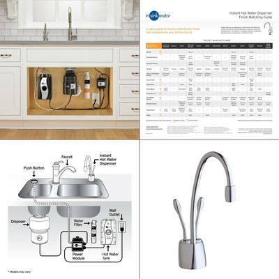 Some of the most reviewed products in Chrome InSinkErator Instant Hot Water Dispensers are the InSinkErator Invite HOT100 Series Instant Hot Water Dispenser Tank with 1-Handle 6.25 in. Faucet in Chrome with 1,205 reviews and the InSinkErator Invite Contour Series Instant Hot Water Dispenser Tank with 1-Handle 5.6 in. Faucet in Chrome with 817 ...