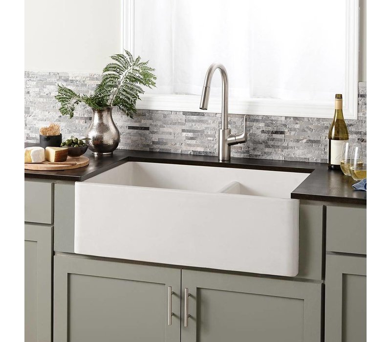 Native Trails Dreamer kitchen sink in platinum To create the company's trademark fireclay basins, Italian craftspeople first fire the clay in extreme temperatures exceeding 2,200 degrees Fahrenheit, then hand-glaze each sink. It is then fired for the third time and finished in a custom formulated sealer.