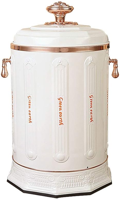 White metal kitchen garbage can