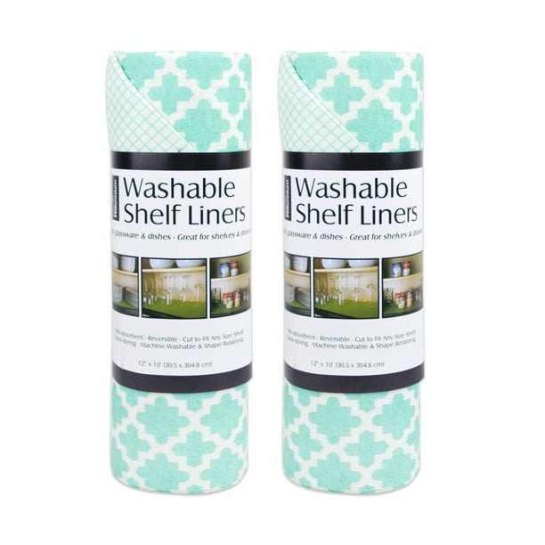 DII Non Adhesive Cut to Fit Machine Washable Shelf Liner Paper For Cabinets, Kitchen Shelves, Drawers, Set of 2, 12 x 10" - Aqua Lattice