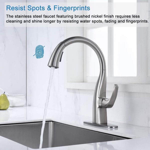 CASAINC Spring sprayer kitchen faucet with deck plate Brushed Nickel 1-Handle Deck-Mount Pull-Down Touch Kitchen Faucet