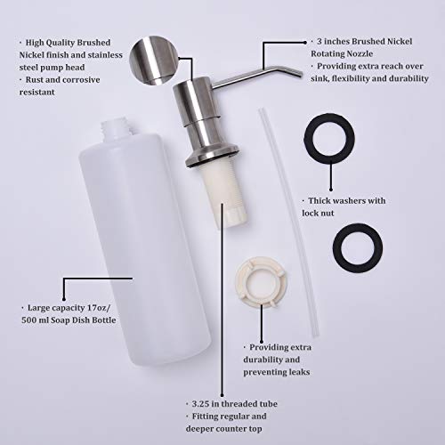 Soap Dispenser for Kitchen Sink Counter Dispenser 17 OZ Bottle Built in Refill from The Top (Brushed Nickel) ️【EASY TO INSTALL】A detailed step-by-step installation instructions is included, no require plumber,finish DIY installation only takes you a few minutes