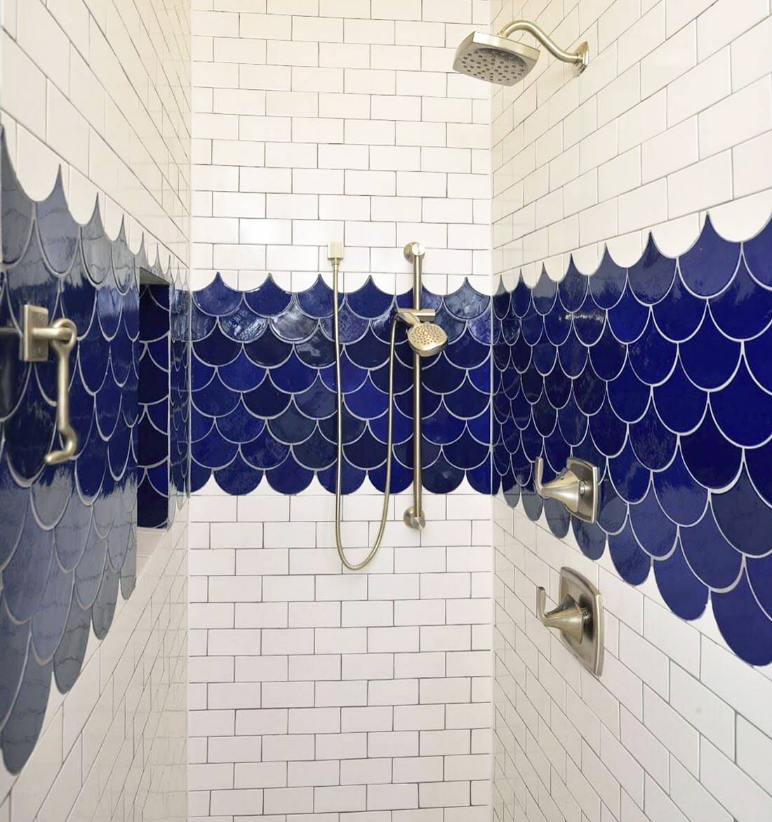 Moroccan fish scale tile also known as mermaid tile, comes in a variety of sizes and colors. I feel like people follow bathroom trends way too much and this tile is a beautiful, original idea. Fish scale tiles made of glass, porcelain, and natural stone for the kitchen, backsplash, bathroom, shower, floor, and wall applications.
