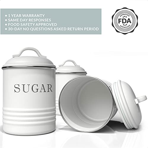 Metal Farmhouse Decor Kitchen Storage Canisters, Set of 3 Iron Flour and Sugar and Coffee Containers, Small 60 Oz, Medium 100 Oz, Large 180 Oz (Off ...