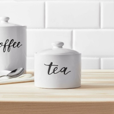 An everyday essential, these stoneware canisters are conveniently labeled so that you can keep all of your kitchen staples organized within easy each. KEY DETAILS • Stoneware in White. • Rubber ring helps seal lid to canister. • Sold ind…