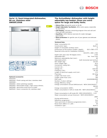 Serie | 4 Semi-integrated dishwasher 60 cm Stainless steel SMI46MS03E. There are no reviews for this product0.0. Guaranteed by Bosch for lifetime.