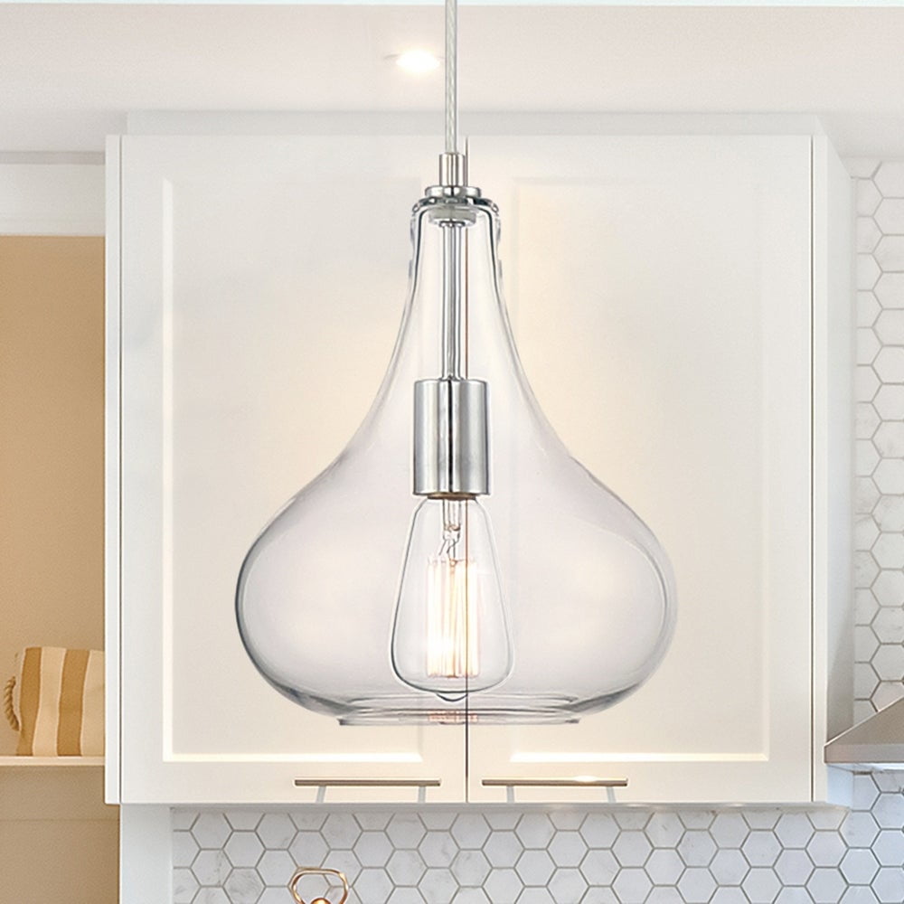 Vanity Art Modern Elegant Chrome 1 Light Glass Pendant Ceiling Light Fixture Chandelier Light For Kitchen Dining Room
