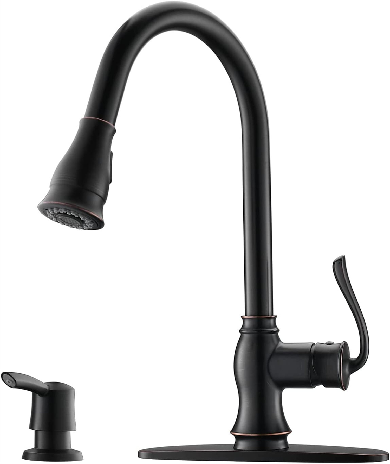 APPASO 3 Hole Kitchen Faucet with Pull Down Sprayer Oil Rubbed Bronze, 2-Hole Pull Out Kitchen Sink Faucet with Side Single Handle and Soap Dispenser, ...