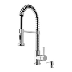 The Hansgrohe kitchen faucet with pot filler can be used for commercial or residential use and features a spout that swivels 180 degrees, providing greater access to any area of the sink. An instant hot-water dispenser can be a handy addition to your kitchen. InSinkErator hot-water dispensers are a perfect complement to your present faucet. VIGO Edison Pull-Down Kitchen Faucet With Soap Dispenser, Stainless Steel by VIGO (1399) $240$347. Taking inspiration from culinary kitchens, The Edison by VIGO boasts a sleek design and a premier finish. Smooth texture adds a touch of elegance to this industrial pull-down kitchen faucet. Addison Single-Handle Pull-Down Sprayer Kitchen Faucet with Touch2O Technology and Soap Dispenser in Stainless. by Delta (371) $ 437 41. Linden Single-Handle Pull-Out Sprayer Kitchen Faucet with Soap/Lotion Dispenser in Chrome. by Delta. Shop this Collection (148) $ 199 00. Project Guide. Delta 11946-SSSD-DST Bellini Single Handle Kitchen Faucet with Spray and Soap Dispenser, Stainless 63 Black Kitchen Faucets with Pull Down Sprayer Kitchen Sink Faucet with Pull Out Sprayer Single Hole Deck Mount Single Handle Stainless Steel 866068R 263 $49 70 Save 5% with coupon Get it as soon as Wed, Dec 22 FREE Shipping by Amazon