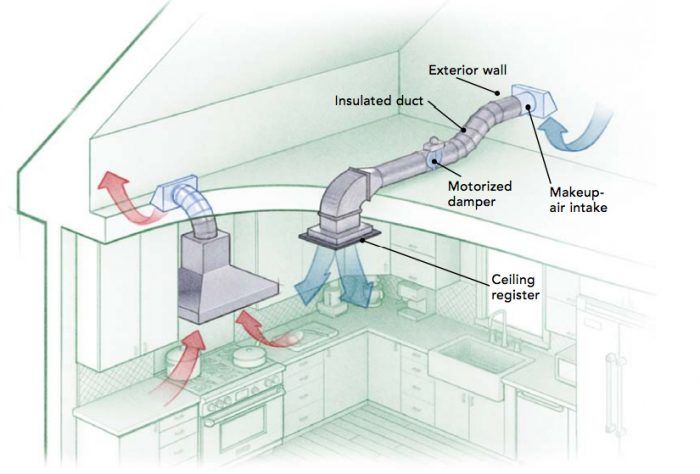 Kitchen ventilation: Make-up air requirements are driving me crazy. Make-up air systems can be tedious to install and many contractors don't know how to install them properly. There is little information about what to do Not sure about the residential code, but I design make up air solutions for commercial applications. You can calculate the maximum kW needed to...