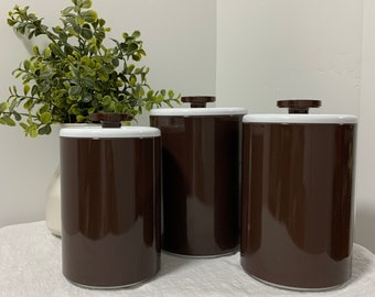 Brown Canisters - Etsy Set of 4 Vintage 1970s Brown Ceramic Kitchen Canister Set. Flour Sugar Tea Coffee Ad by ironboundvintage Ad from shop ironboundvintage ironboundvintage From shop ironboundvintage. 5 out of 5 stars (1,383) $ 85.00. Add to Favorites Vintage 4-Piece Brown Floral Nesting Tin Canister Set SP35 ...