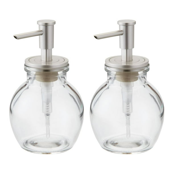 mDesign Round Glass Refillable Liquid Soap Dispenser Pump Bottle for Bathroom Vanity Countertop, Kitchen Sink - Holds Hand Soap, Dish Soap, Hand ...