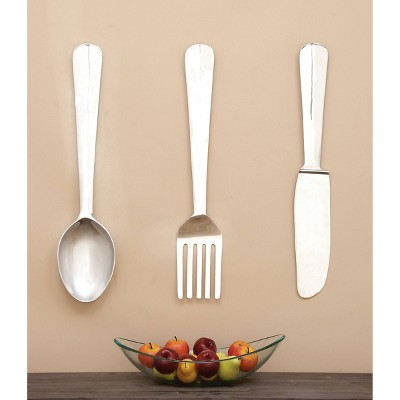 This item: Deco 79 Set of 3 Utensil Wall Décor. $99.61. In Stock. Ships from and sold by Amazon.com. FREE Shipping. Timelike Kitchen Wall Clock, 3D Removable Modern Creative Cutlery Kitchen Spoon Fork Wall Clock Mirror Wall Decal Wall Sticker Room Home Decoration (Sliver) $11.99. In Stock. Sold by Timelike Store and ships from Amazon Fulfillment.