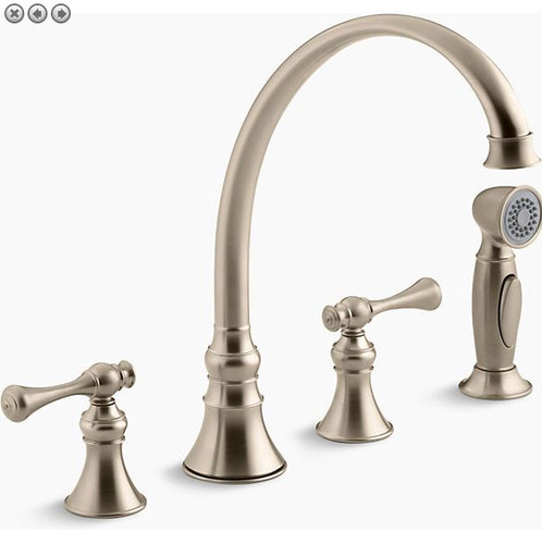 KOHLER K-690-BV Vinnata Kitchen Sink Faucet, Vibrant ... Product description. K-690-BV Finish: Vibrant Brushed Bronze Features: -Traditional styling coordinates with any home d cor.-Both kitchen and secondary faucet options provide complete coordination with the kitchen.-Swivel ball joint between sprayhead and hose creates highly efficient hose maneuverability.-Single-control one-hole drilling for less counter clutter and easy operation.-Adequate ... Kitchen Sink Faucets | Kitchen Faucets | Kitchen - KOHLER Simplice® single-hole or three-hole kitchen sink faucet with 16-5/8" pul... K-596-CP CAD $628.00 Artifacts® single-hole kitchen sink faucet with 17-5/8" pull-down spout ... K-99259-CP CAD $1,106.00 Graze® Pull-down kitchen sink faucet with three-function sprayhead K-22062-CP CAD $1,034.00 Simplice® Touchless pull-down kitchen sink faucet K-22036-CP Faucets Archives - Kohler Faucets Archives - Kohler. BATHROOM. See All Bathroom. Tour 6 Bathrooms. Bathroom Faucets. Lavatory Faucet. Bath Faucet. Exposed Bath Shower Faucet. Bathroom Fittings. KOHLER Revival Kitchen Sink Faucet In Vibrant Brushed Bronze KOHLER Coralais Decorator Kitchen Sink Faucet In Biscuit . Offering convenience, quality and style at a competitive price, this Coralais decorator kitchen sink faucet with sidespray brings sleek design continuity to the kitchen. A single-lever handle completes the look, and the contemporary or transitional style complements a variety of dicors.