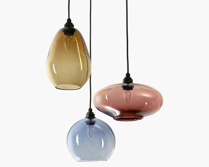 Blown Glass Pendant Light | Cobalt Iris | Artisan Crafted Lighting The blown glass pendant lights in this collection are multi-dimensional masterpieces sure to add the final polish to your décor. The open bottom creates a spotlight effect, making this pendant ideal for any space that requires a focal light point. ... above a cozy reading chair, two in the bedroom over the nightstands or three above a kitchen ...
