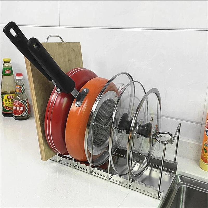 Metal Pan Pot Lid Organizer Adjustable Dish Rack Drainer Cutting Board Holder Cookware Stand Holder for Cabinet Storage