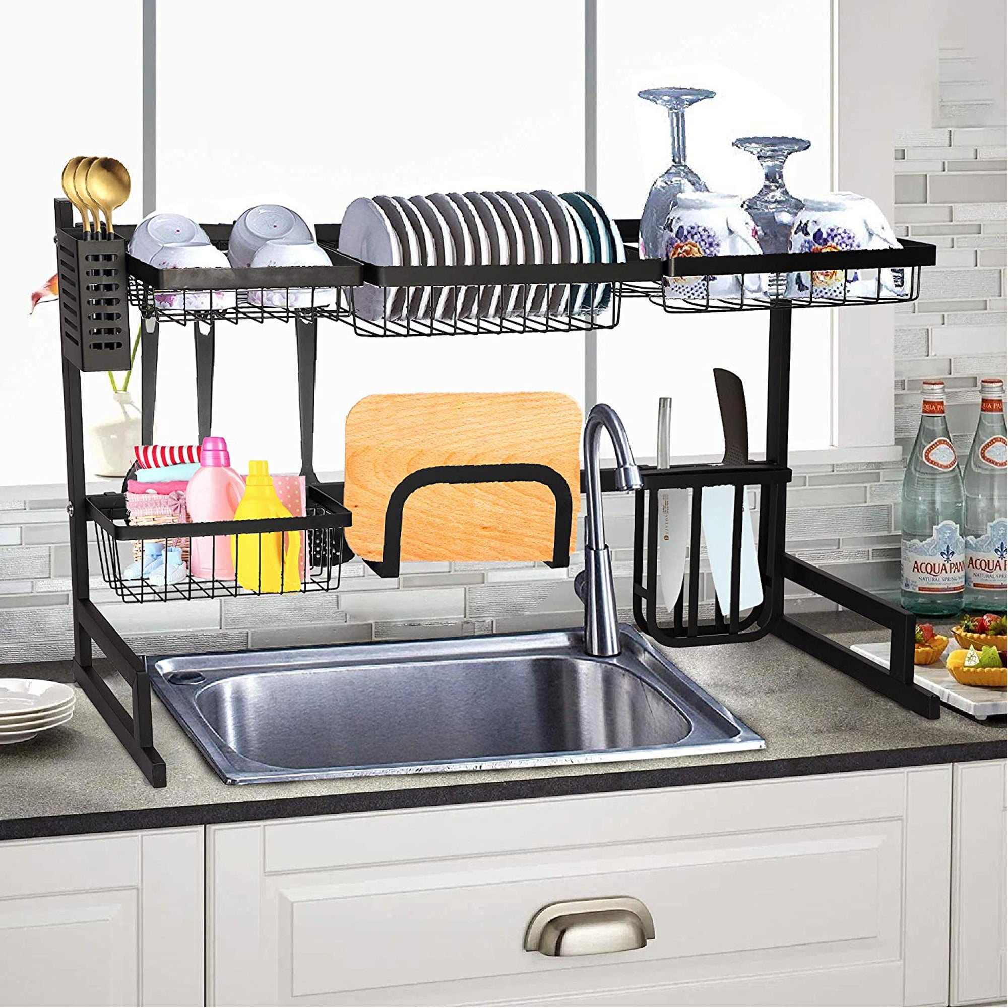 Over The Sink Dish Drying Rack - SINOART 2-Tier Dish Drying Rack Over Sink Adjustable Length(26-37.5in), Stainless Steel Dish Drainer, Dishes Rack ...