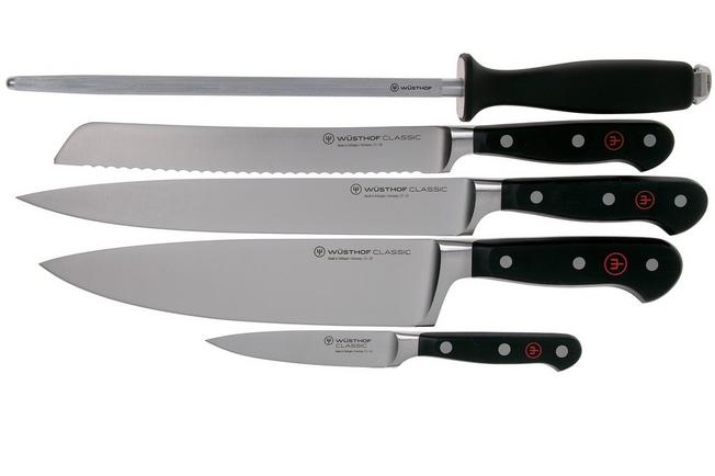 Best Wusthof Knife Sets Reviews - bikinissportsbarandgrill.com Wusthof Knife Set includes: 3.5" Paring Knife, 4.5" Utility Knife, 5" Serrated Utility Knife, 6" Kiritsuke Prep Knife, 8" Bread Knife, 8" Chef's Knife, 9" Triple Rivet Honing Steel, Come-Apart Kitchen Shears and 17 Slot Acacia Knife Block