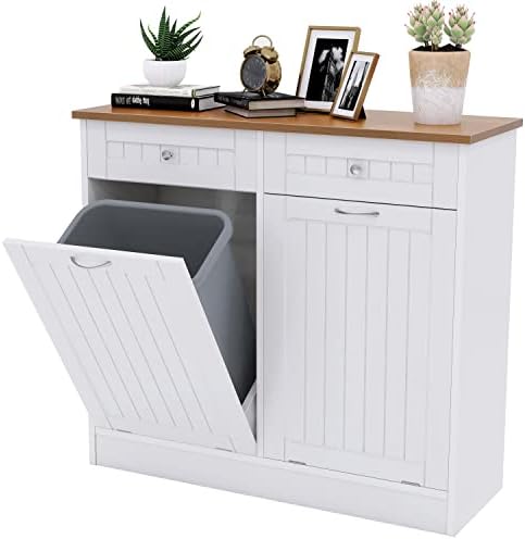 Double Kitchen Trash Cabinet, Dual Tilt Out Trash Cabinet with Two Wood Hideaway Trash Holder Drawers, Free Standing Wooden Kitchen Trash Can ...