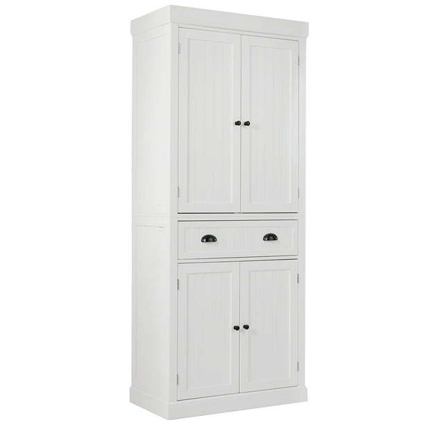 HOMCOM 71 Freestanding Kitchen Pantry with 4 Doors and 2 Large Cabinets Tall Storage Cabinet with Wide Drawer for Kitchen Dining Room White