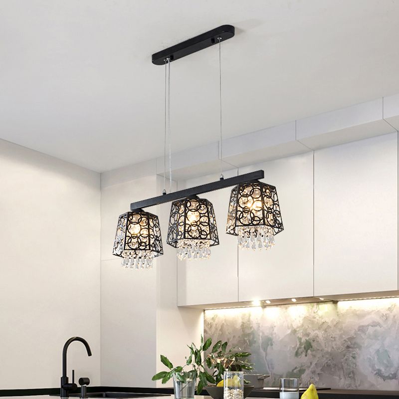 Crystal Pendant Light, Adjustable Modern Hanging Lights Dining Room Light Fixture ,Black Pendant Lighting for Kitchen Island Dining Room Hallway ...