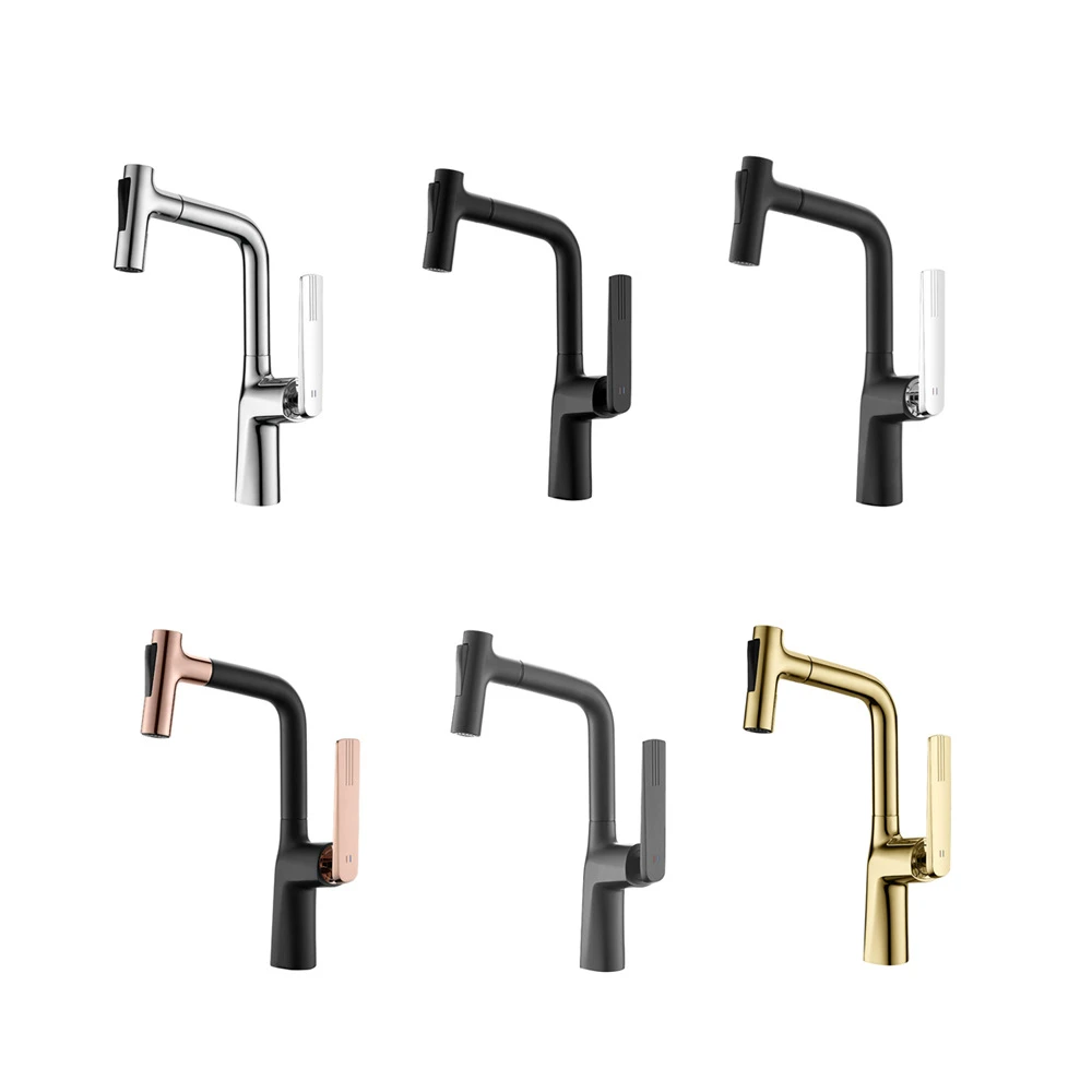 3 Function Pull Out Bathroom Sink Faucet Single Handle Matte Black Bathroom Faucets One Hole Modern Brass Basin Vanity Mixer Taps With Valve