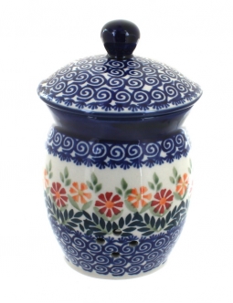 Blue Rose Polish Pottery | Red Poppy Garlic Keeper A great way to store your garlic and show off a beautiful piece of pottery! 7.25" tall - 4.25" wide How to Care for your Polish Pottery Customers Who Bought This Also Bought Zaklady Nature Large Spoon Rest $26.50 Available: 1 Vena Butterfly Soup Spoon $19.50 Available: 10 Zaklady Blue Tulip Bread Container $269.50 Available: 4 Manufaktura