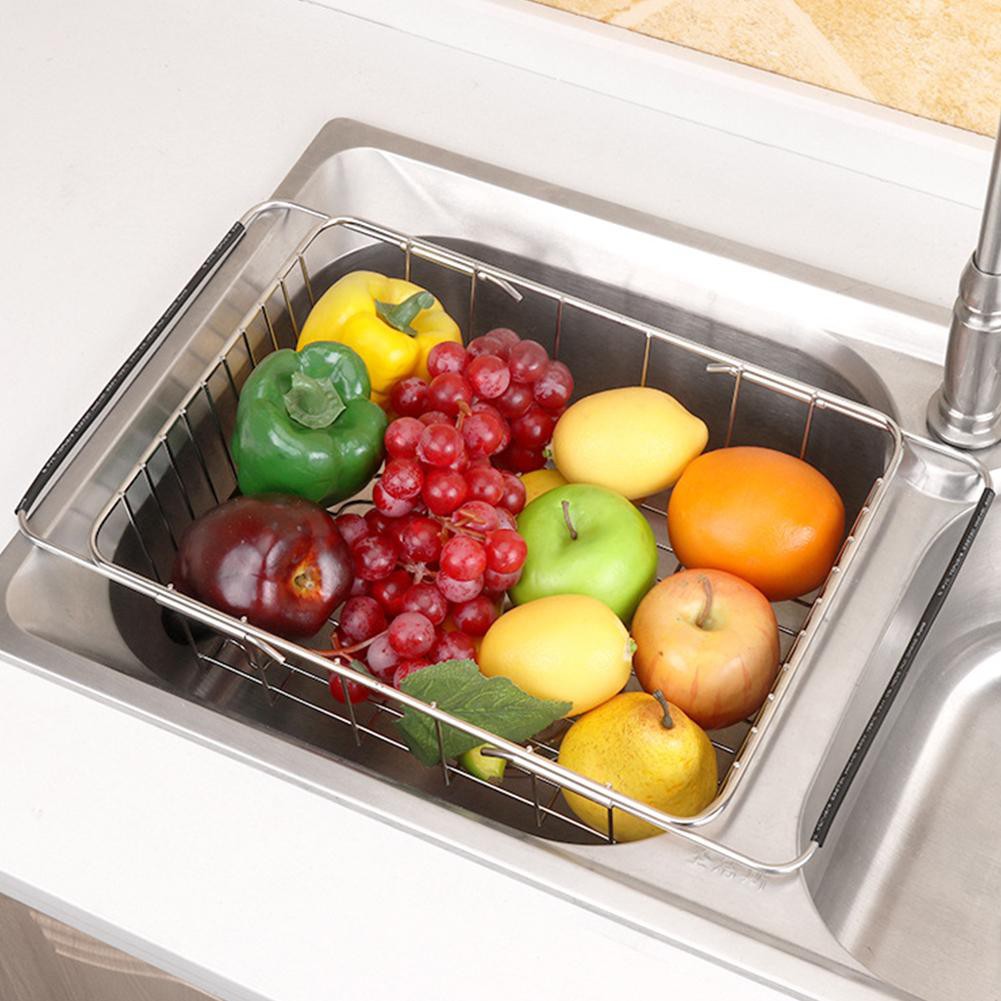 Kitchen Sink Basket / Stainless Steel / Adjustable Rectangular Drain Basket / Penapis Pinggan/Alas Sinki