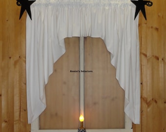 New Primitive French Country BURLAP WINDOW BALLOON VALANCE Swag Curtains VHC Brands Primitive Balloon Valance Black Rod Pocket Kitchen Window Curtains . $21.95 . Free shipping . VHC Brands Primitive 16"x72" Stars Valance Tan Rod with Kitchen Window Curtains . $19.95 . ... New Primitive French Country BURLAP WINDOW BALLOON VALANCE Swag Curtains . Item Information. Condition: